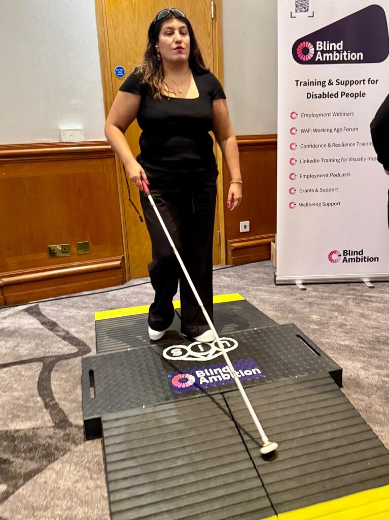 Representing UIS, Gavin Iredale attended the event at the Birmingham Hilton Metropole to support Seema and help showcase the Safe Passage Ramp (SPR) – an accessible temporary works solution developed collaboratively by Blind Ambition, UIS, Severn Trent, and Cusack.